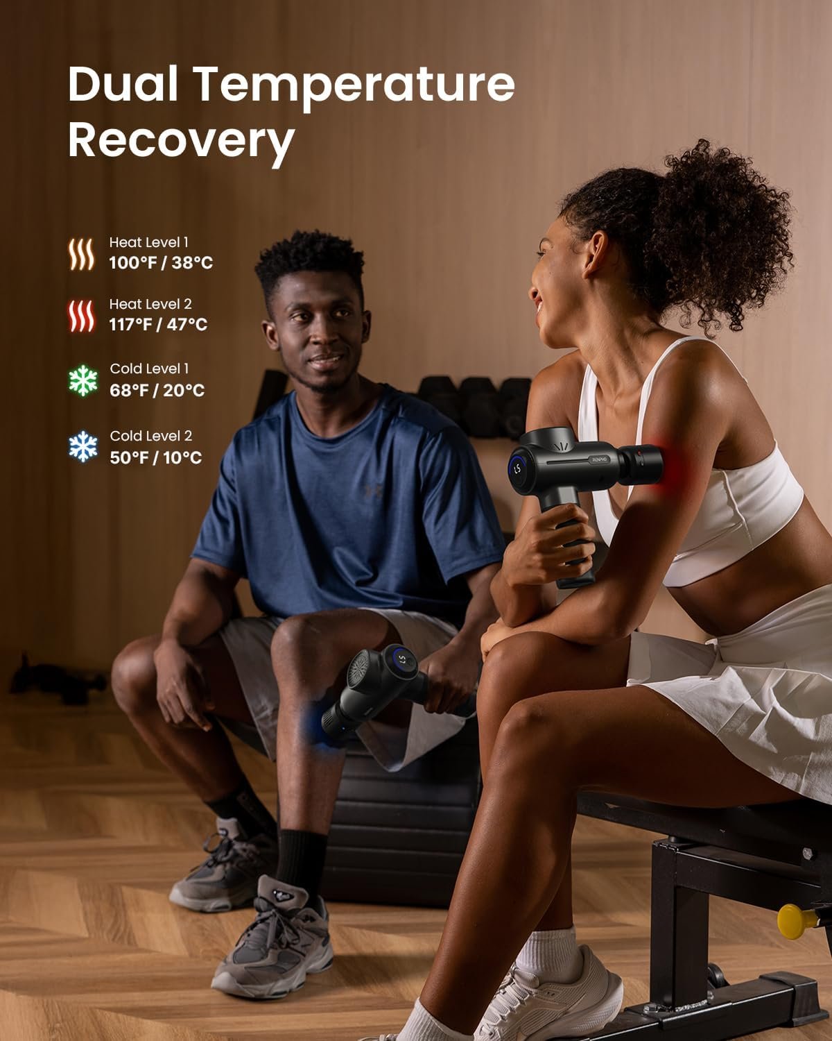 Massage Gun with Heat and Cold: This massager gun is equipped with a heat and cold head with 4 adjustable temperature settings to target various muscle groups