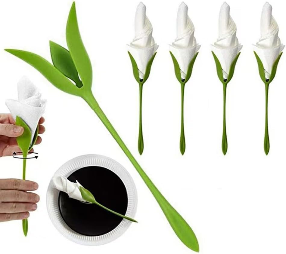 Rose-shaped design: No special folding skills are required; napkins can be folded into an elegant rose shape in seconds. Unlike ordinary napkin holders, this flower holder transforms ordinary paper or cloth napkins into eye-catching table decorations, adding a romantic and elegant touch to the dining table.