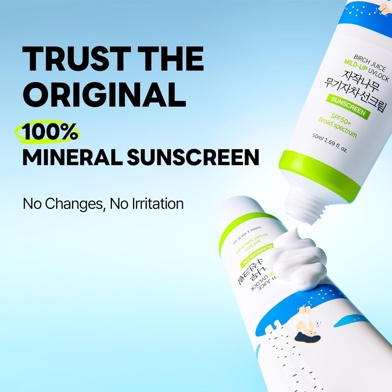 ROUND LAB Birch Juice Mild-up Sunscreen UV LOCK 1.69 Fl Oz | SPF 50+ broad spectrum, Mineral Zinc Oxide, for Sensitive Skin, Control Oil and Sebum, Korean Sunscreen