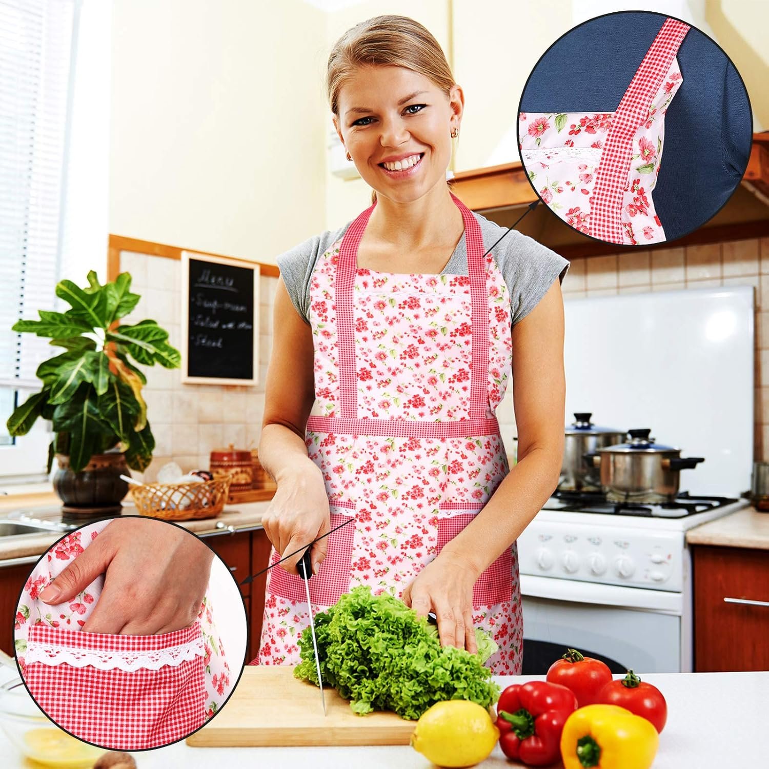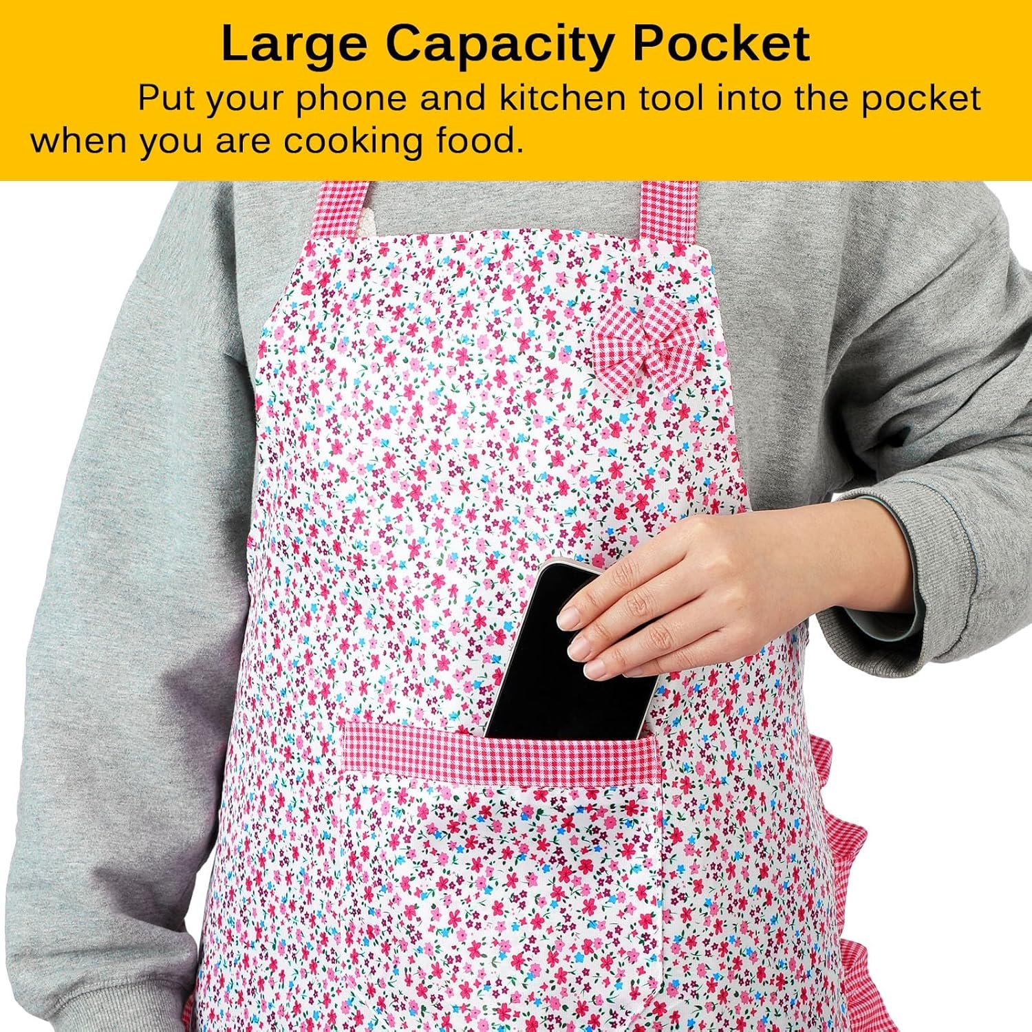 These aprons come with pocket, ensure that you keep your utensils, recipes, spices and phone handy, convenient for you to apply and the pocket makes the apron look more designed.