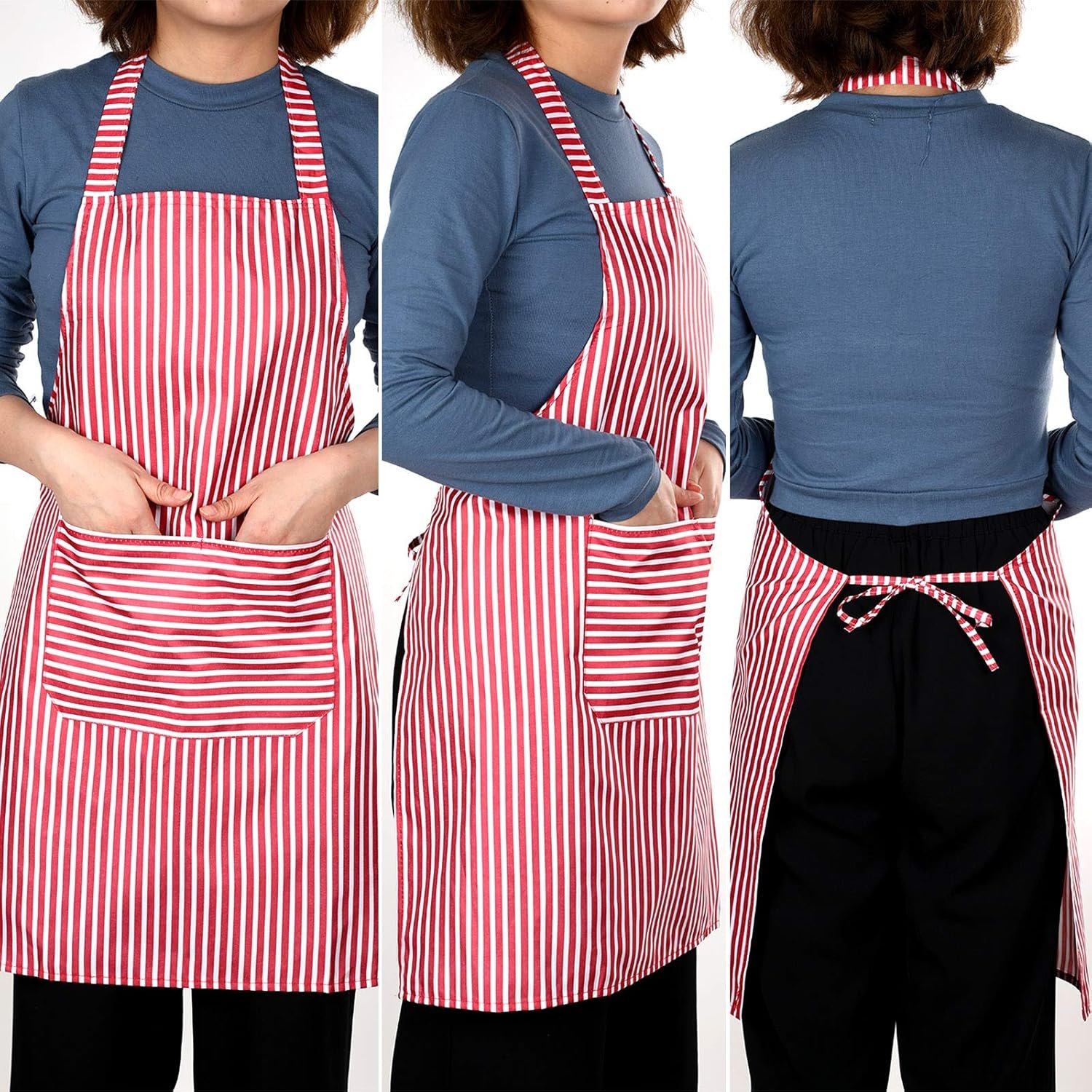 These kitchen cooking aprons have adjustable waist ties that you can adjust to length and make you feel soft, which is easy to put on and take off, can offer you comfortable wearing experience.