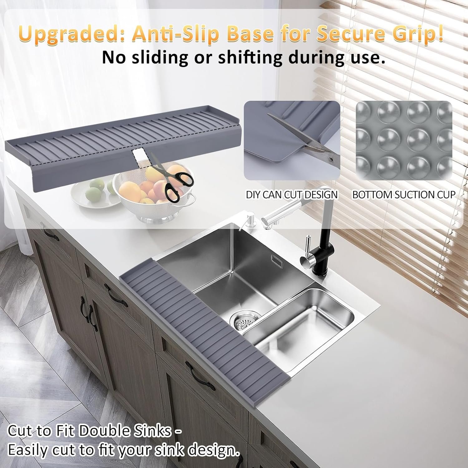 Flexible & Customizable Fit: Easily adapts to various sink shapes and sizes with designated cutting lines, allowing for a precise, snug fit for all types of sinks, from single to double.