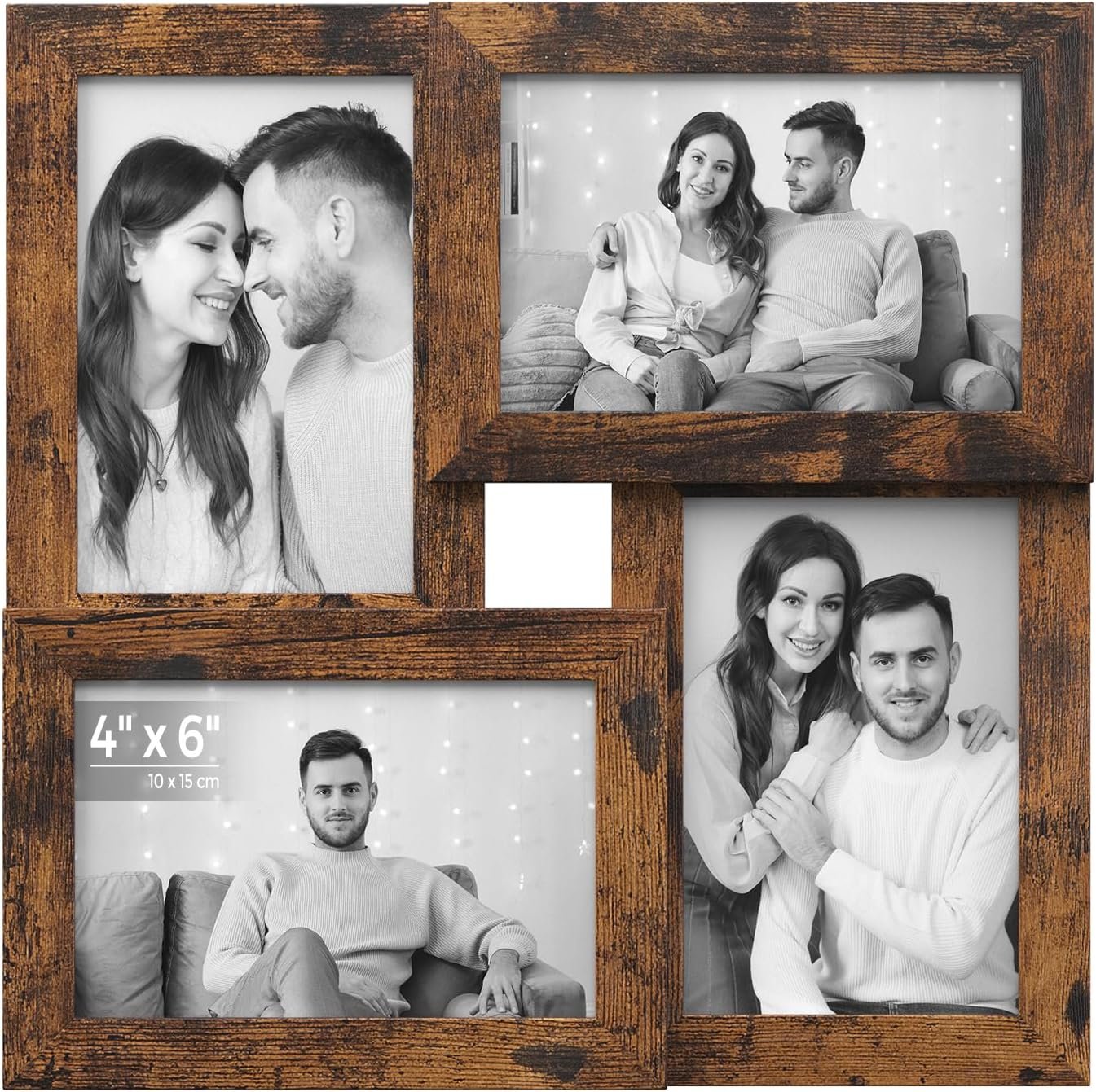 What You’ll Receive: A collage frame set of four 4×6 photos for the wall, making a meaningful gift for your loved ones. Please note that the sample photos inside the frames you receive differ from those displayed on the page