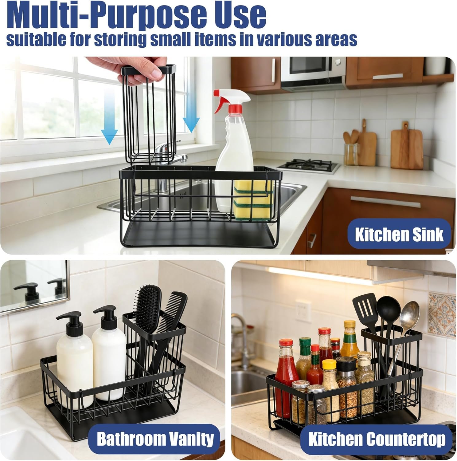 【Small Volume & Kitchen Essentials】OERPHO kitchen sponge holder for sink features an ergonomic divider design allows. OERPHO kitchen sink organizer measures only 7.87″*3.74″*6.5″, suitable for kitchens with limited space with providing ample storage space, an excellent helper for sink organization