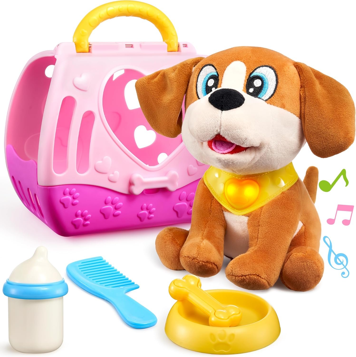 [Plush Dog Toys] Engaging Pet Care Experience: Complete set with feeding, grooming, and water accessories, perfect for little animal lovers and toddler toys!