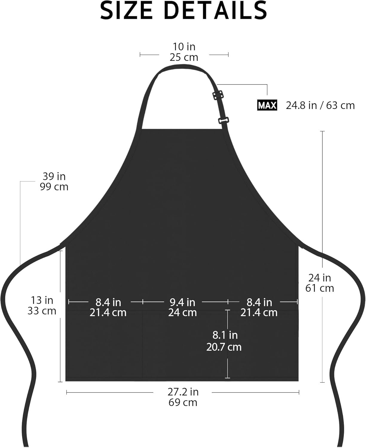 The apron features 3 generously sized front pockets designed for both functionality and ease of use. Their strategic placement ensures quick access to frequently used tools, keeping everything securely within arm’s reach during cooking, grilling, or food prep.