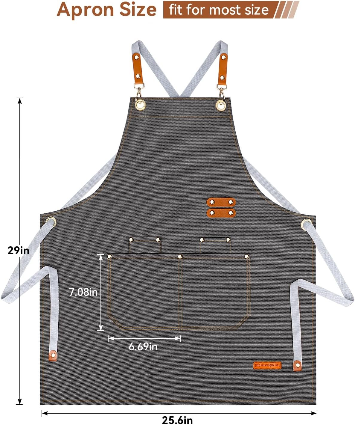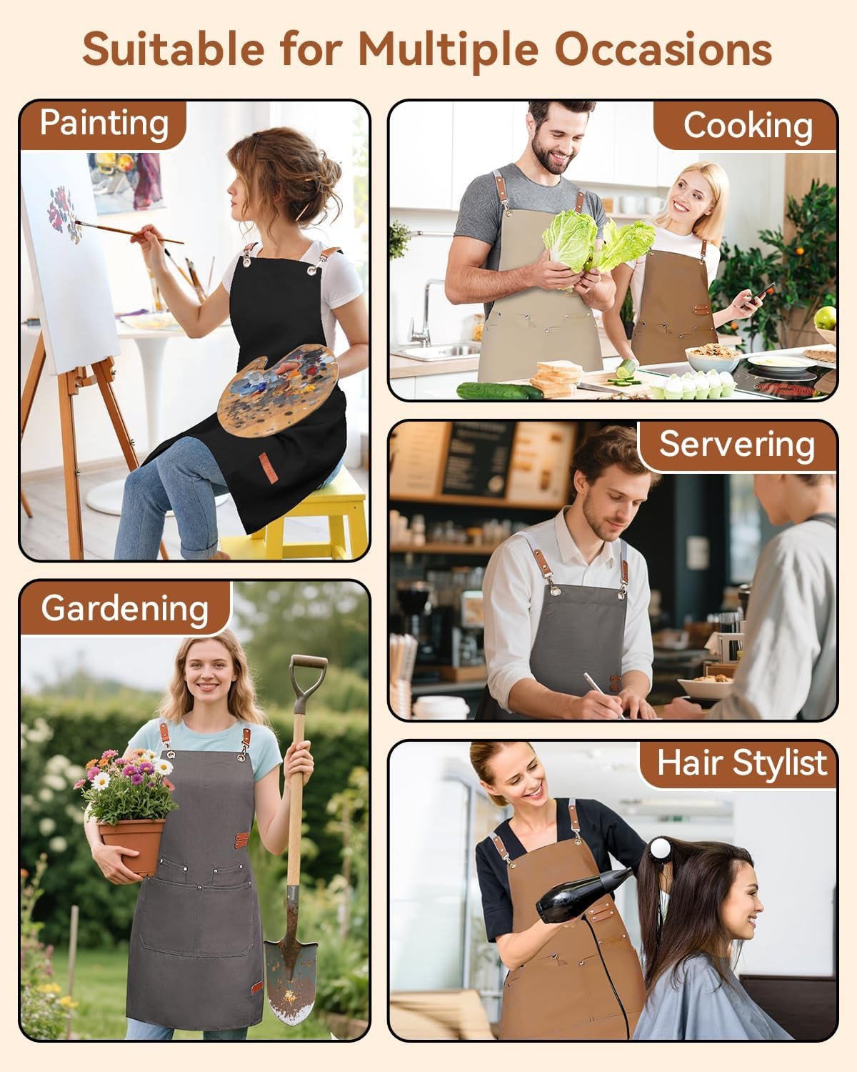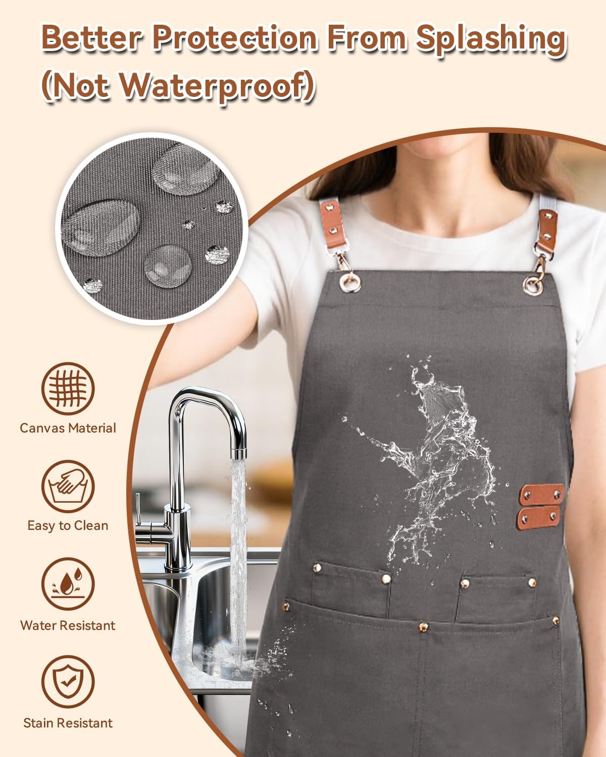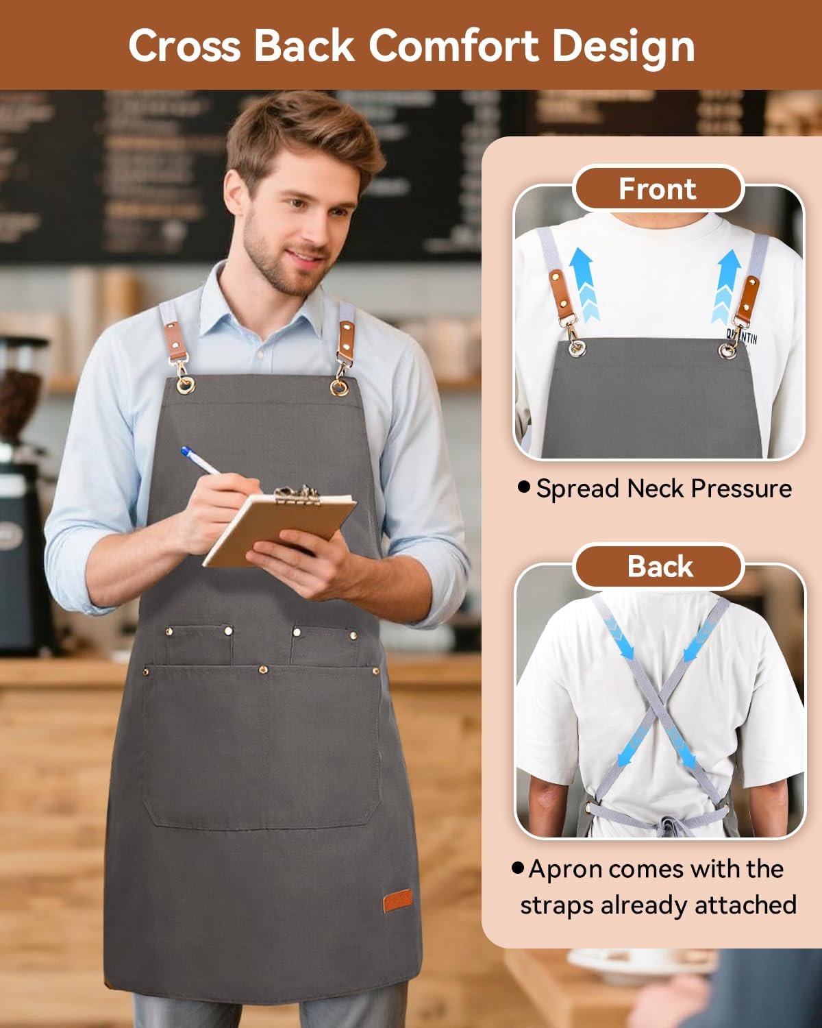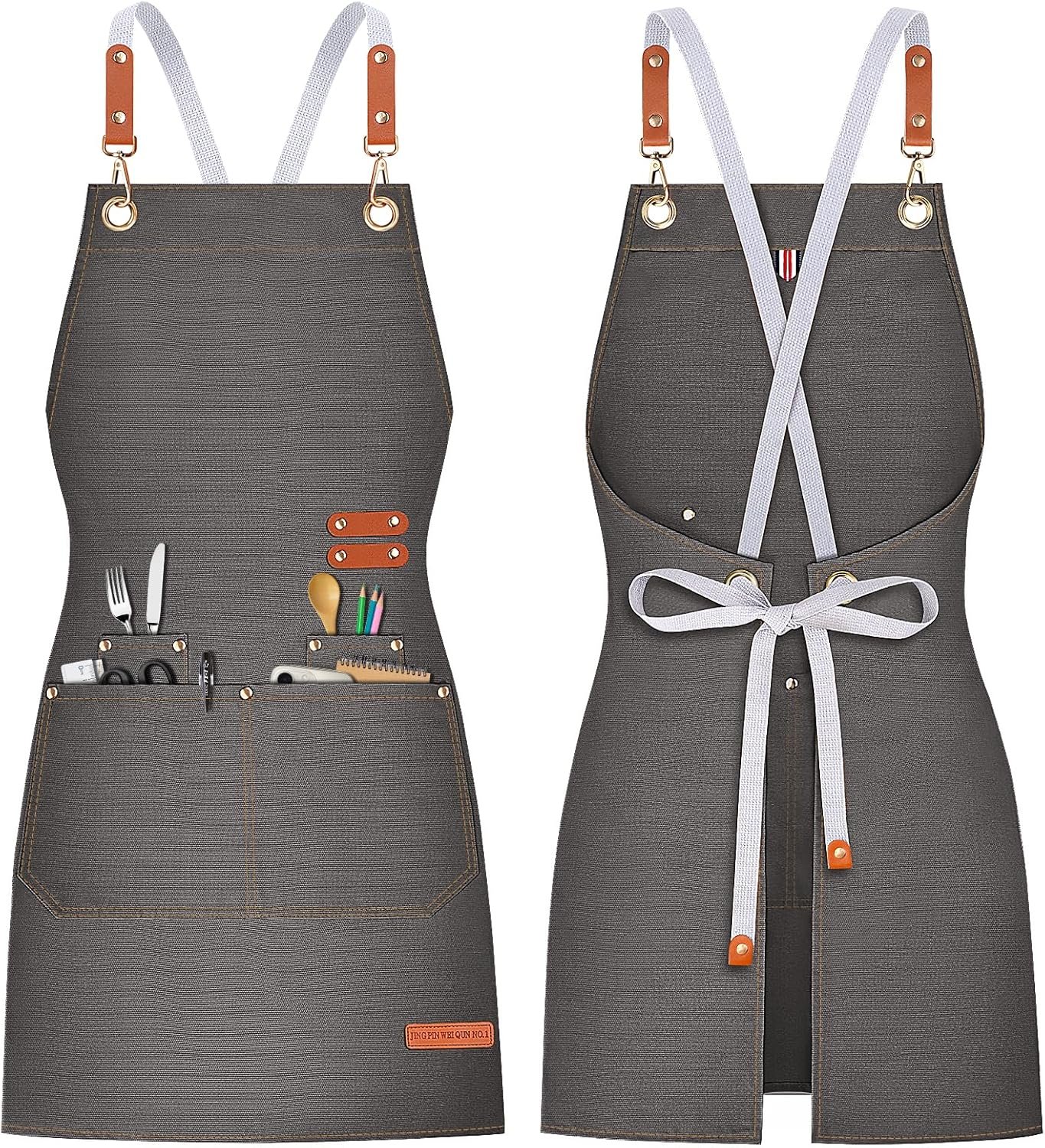 Teskyer Kitchen Cooking Apron with Pockets, Water Oil Resistant, Canvas Cross Back Aprons for Men Women Chef Server