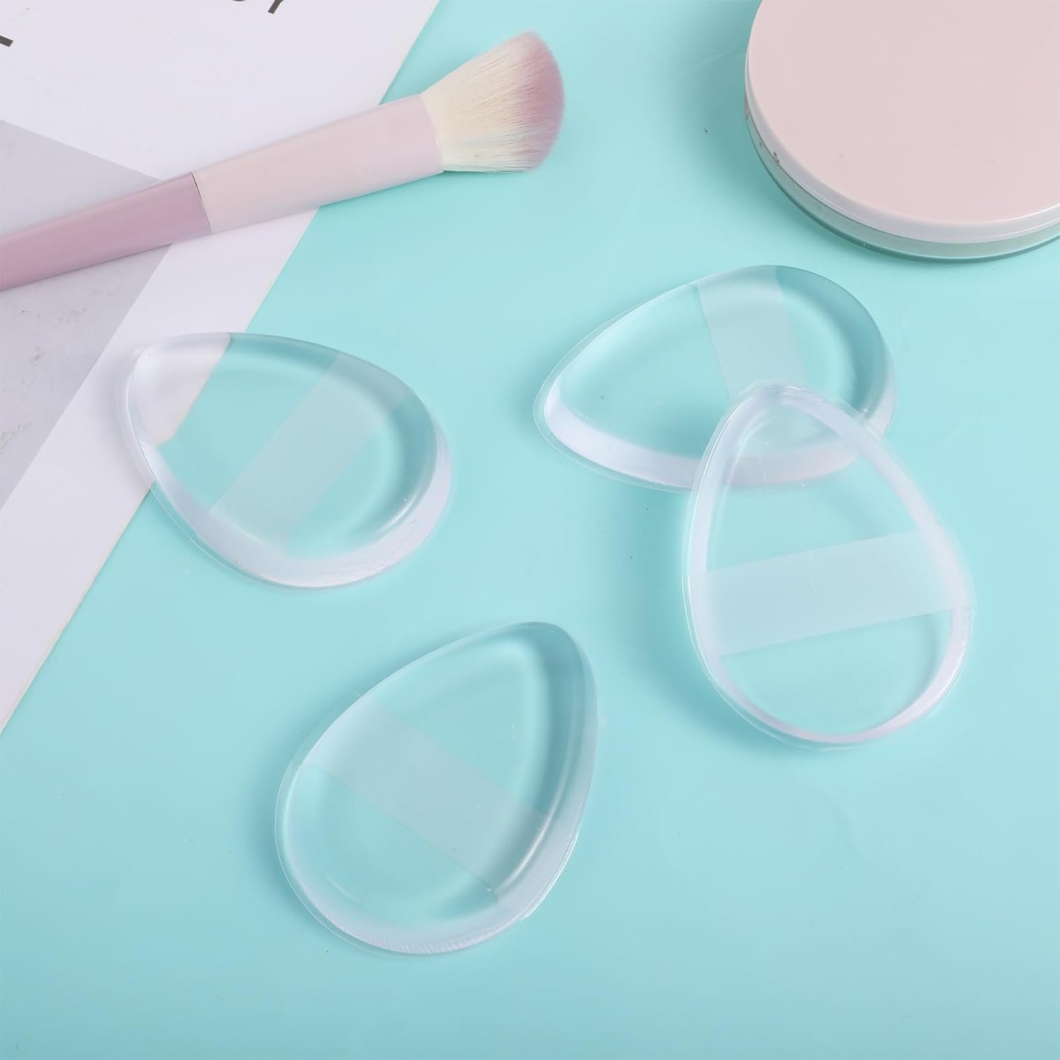 TIESOME 4Pcs Silicone Makeup Sponge Set, Clear Jelly Beauty Blender Reusable Blending Foundation Sponge Puff Non-Absorbent Sponge Puff for Foundation, Concealer, Cream, Blush, Highlighter(Drop)