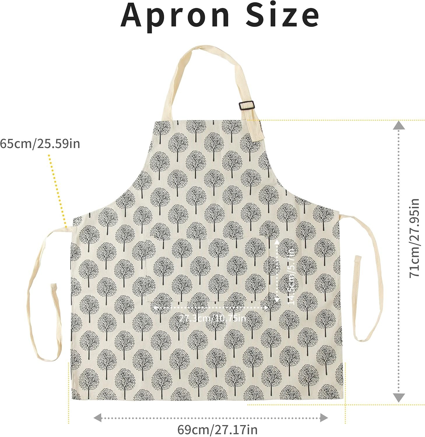 The length of the waist ties is 28 inches, long enough to provide you with 2 different ways to fix the apron (tie the tie behind or in front). Now you don’t have to worry about the string being too short to wear an apron.