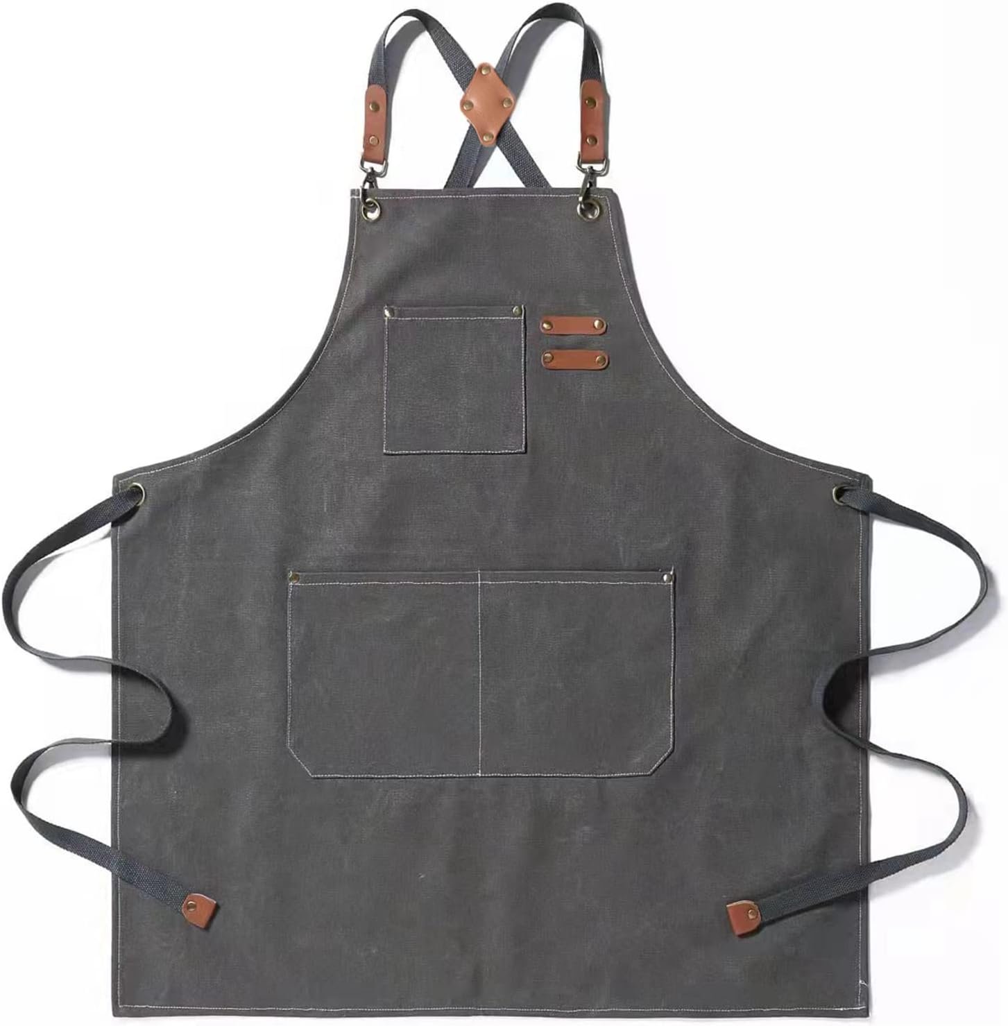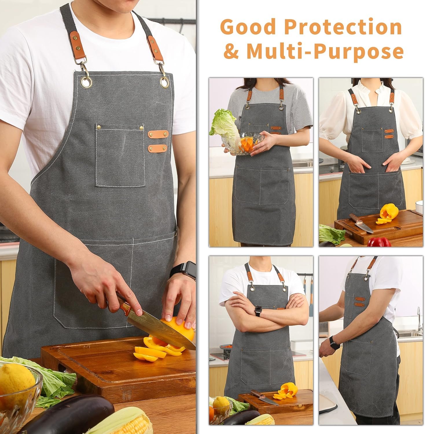 Tosewever Canvas Cross Back Chef Cotton Aprons for Men Women with Large Pockets