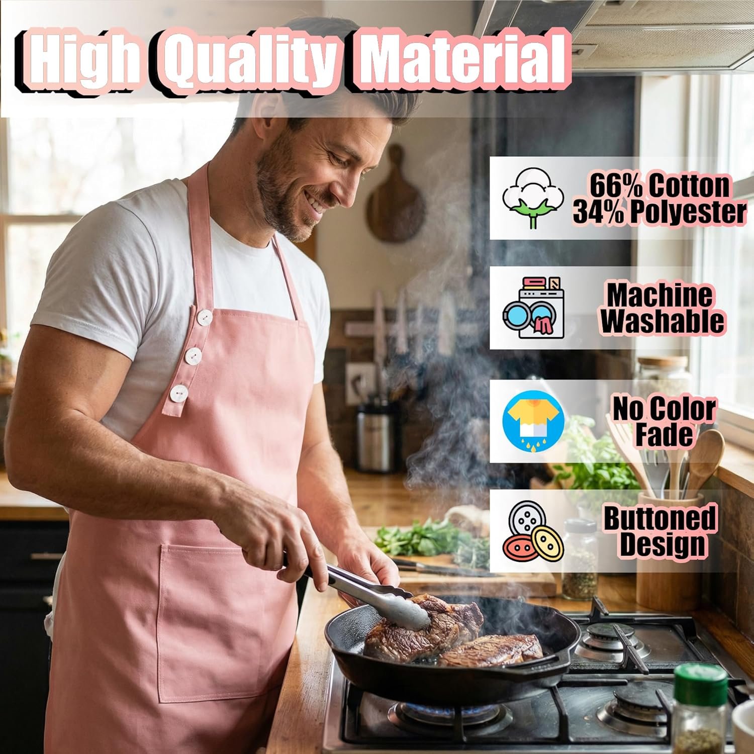 ✅ PREMIUM MATERIAL : Aprons with pockets, which are a mixture of 66% cotton and 34% polyester, provide an excellent experience. The neck strap is buttoned and the waist ties are long.