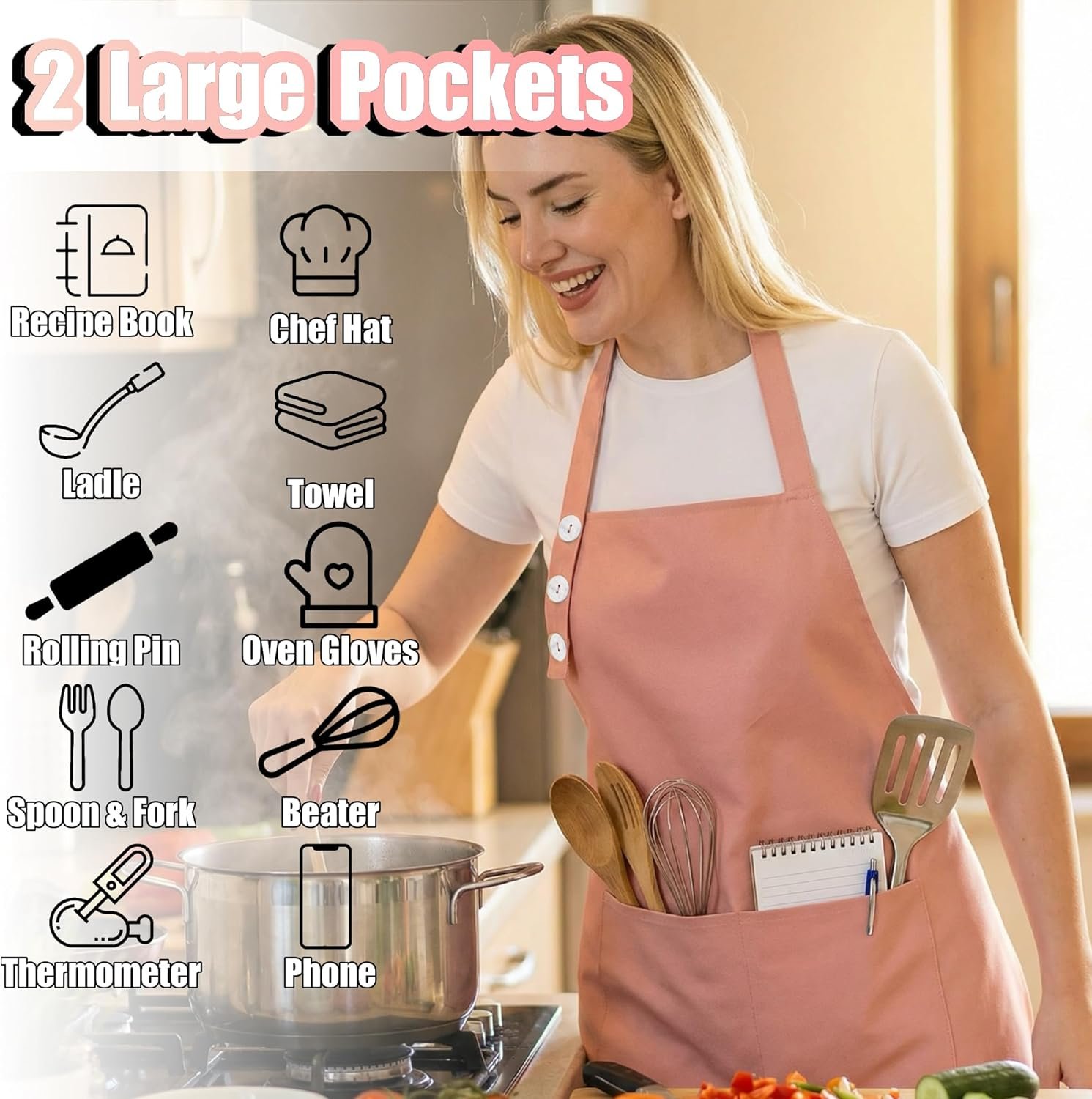 ✅ 2 LARGE POCKETS : Kitchen apron comes with 2 large pockets. You can put your kitchen utensils you want in these pockets or the necessary equipment if you are dealing with painting arts.