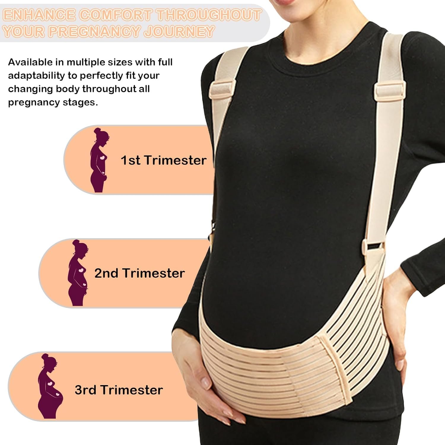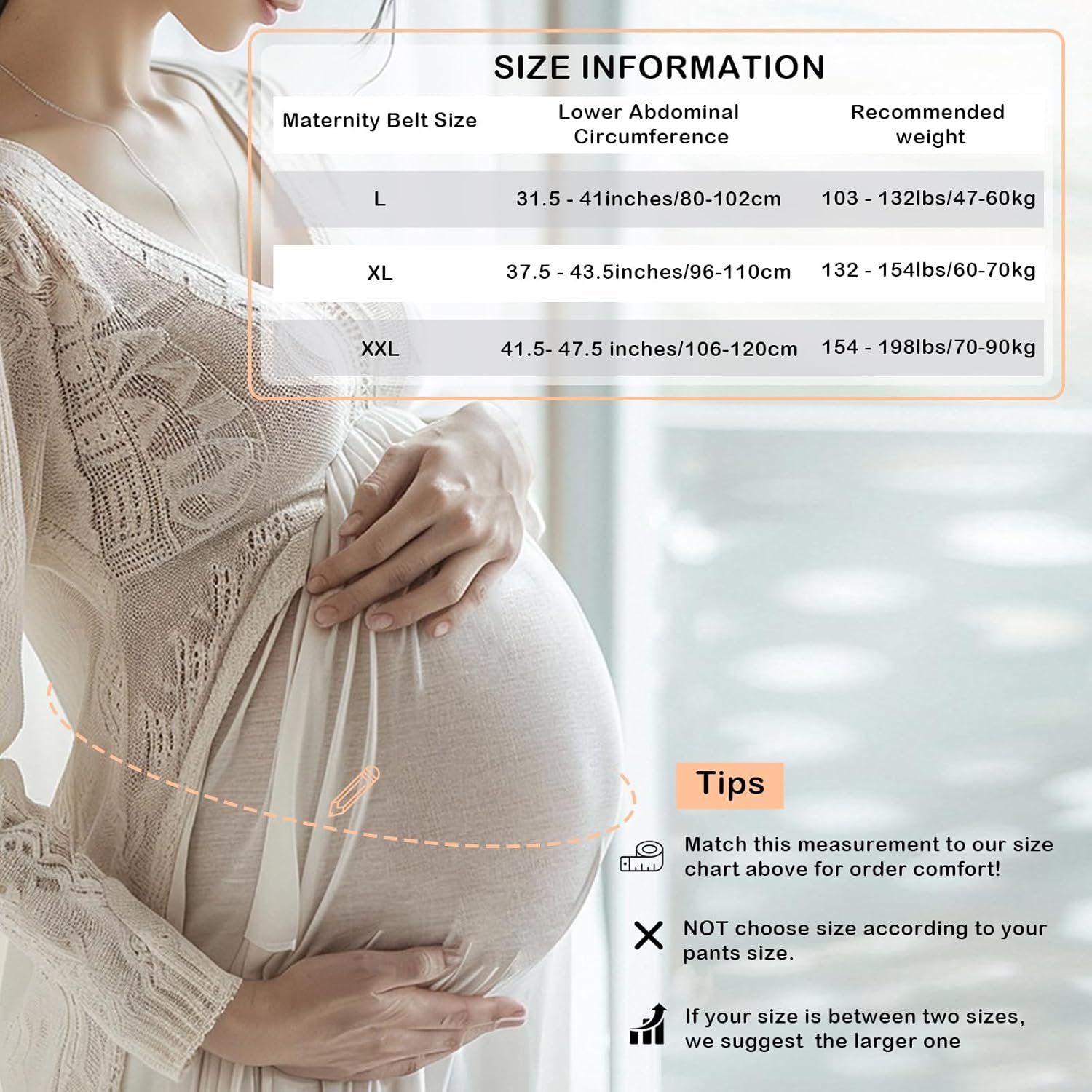 Our premium maternity support belt offers three precision sizes (L/XL/XXL) with abdominal girth ranges from 31.5-47.5 inches, adapting seamlessly to your changing body from first trimester to delivery. Crafted from ultra-soft, breathable polyester, the stretch-to-fit fabric cradles your bump without irritation while keeps you cool. The revolutionary 360° support system combines 45° ergonomic uplift with wide back paneling to redistribute weight, alleviating back/pelvic pressure while creating optimal space for baby’s growth. Adjustable shoulder straps transfer load to your shoulders, and one-touch hook-and-loop fasteners make dressing as easy as slipping on leggings. Whether you’re a first-time mom or an active multitask, our belly band transitions effortlessly from office wear to yoga sessions. More than just support—it’s the thoughtful gift that says ‘We care’ to expecting mothers embarking on their beautiful journey!