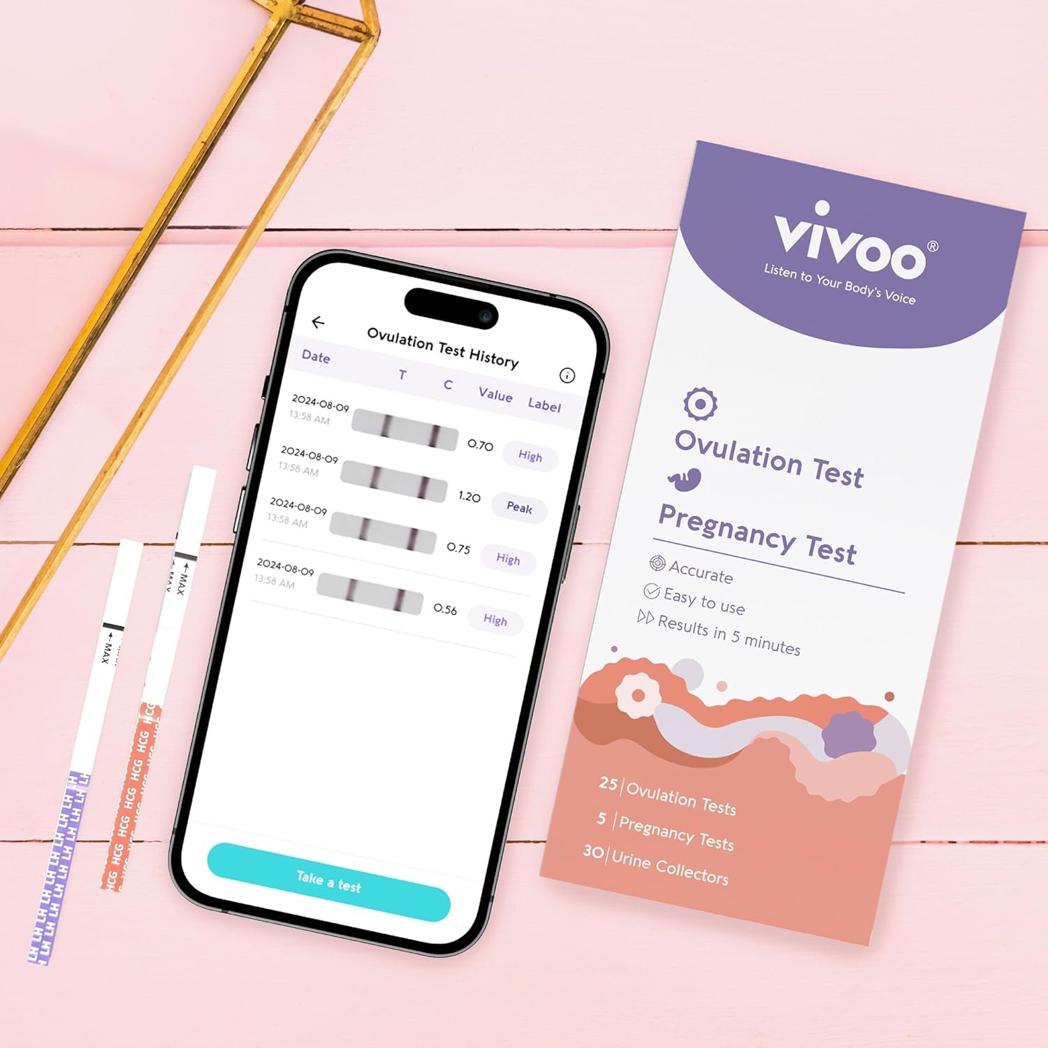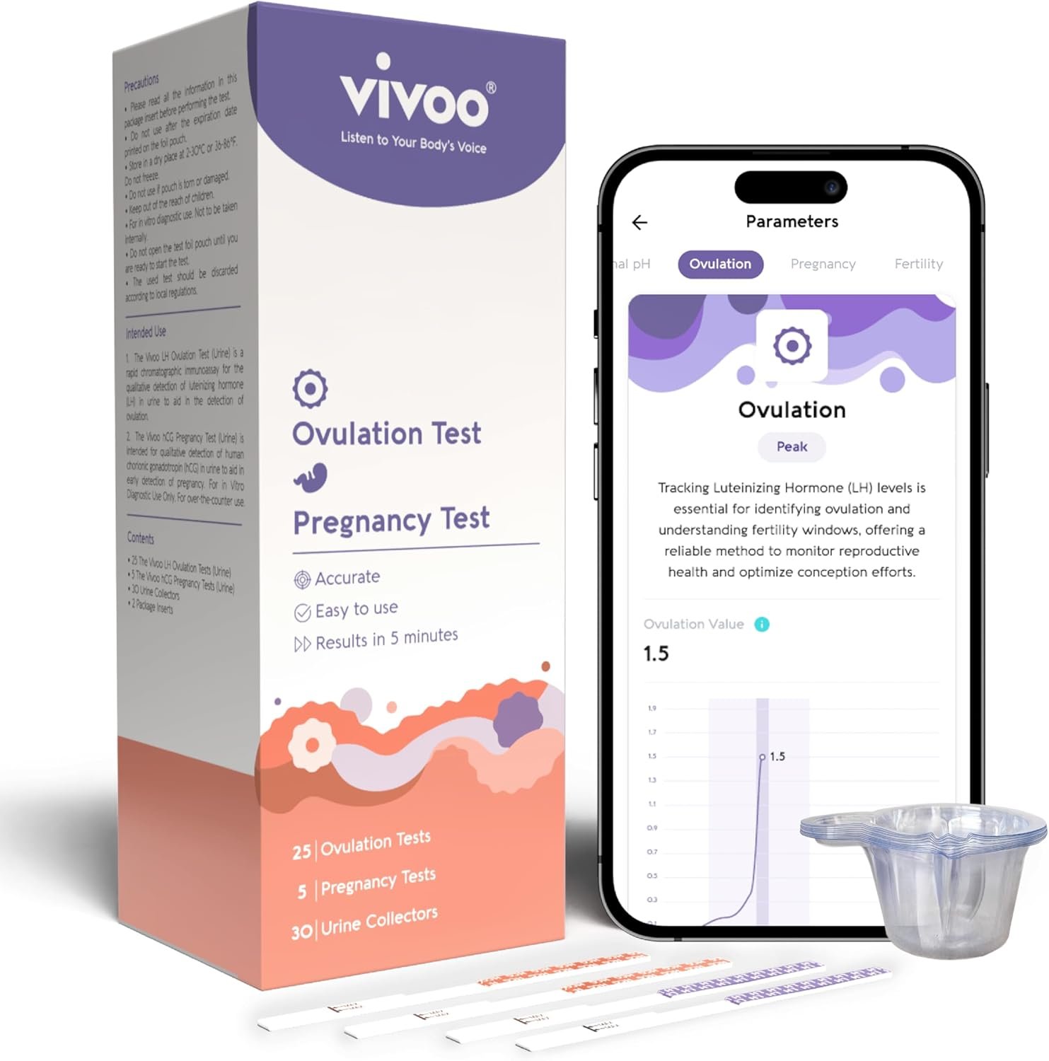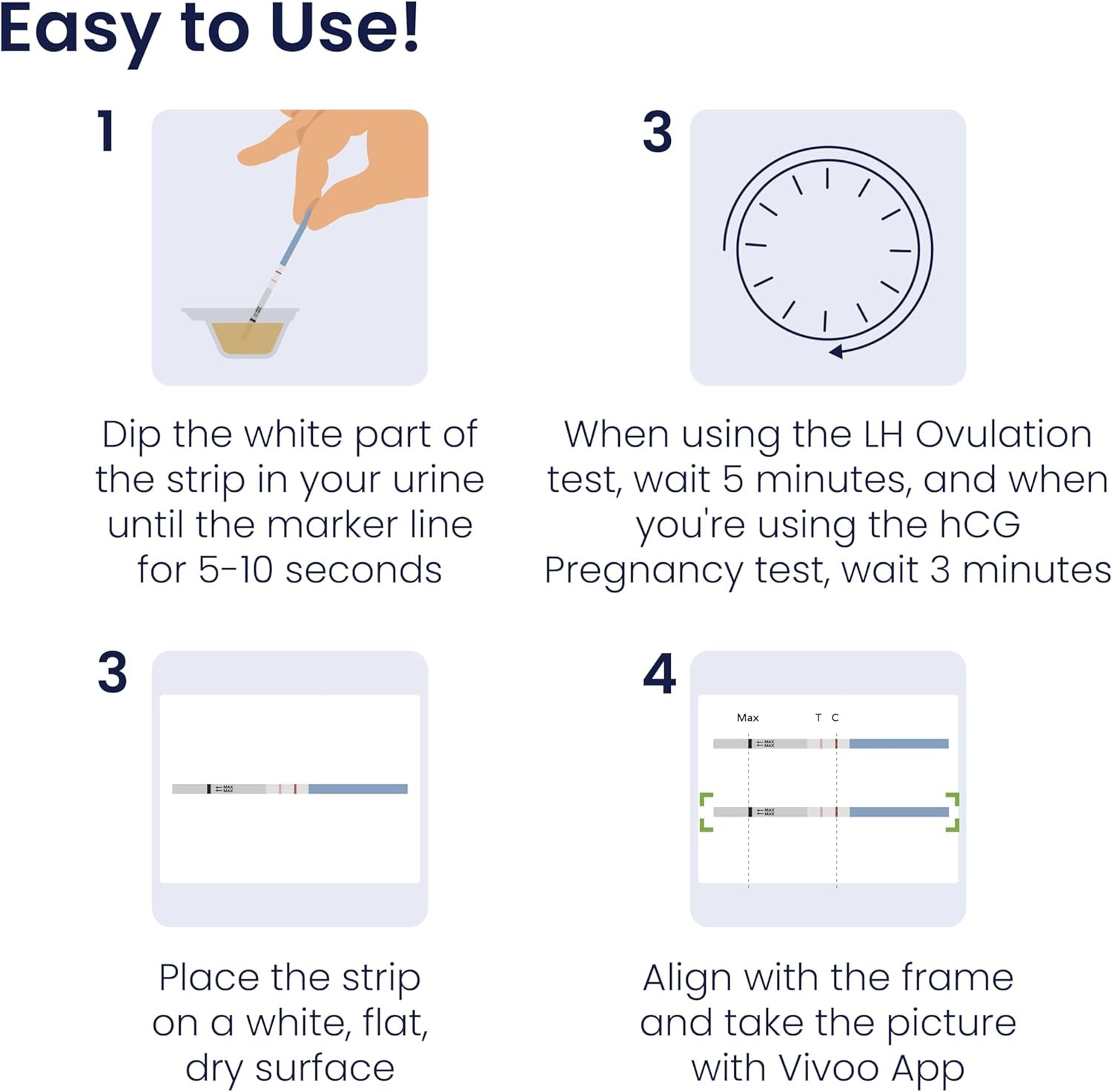 – Fast & Easy Results: See your results in just 5 minutes with the Vivoo Ovulation Test. Our clear, easy-to-read lines help you quickly determine when your LH levels are peaking, so you can plan accordingly.