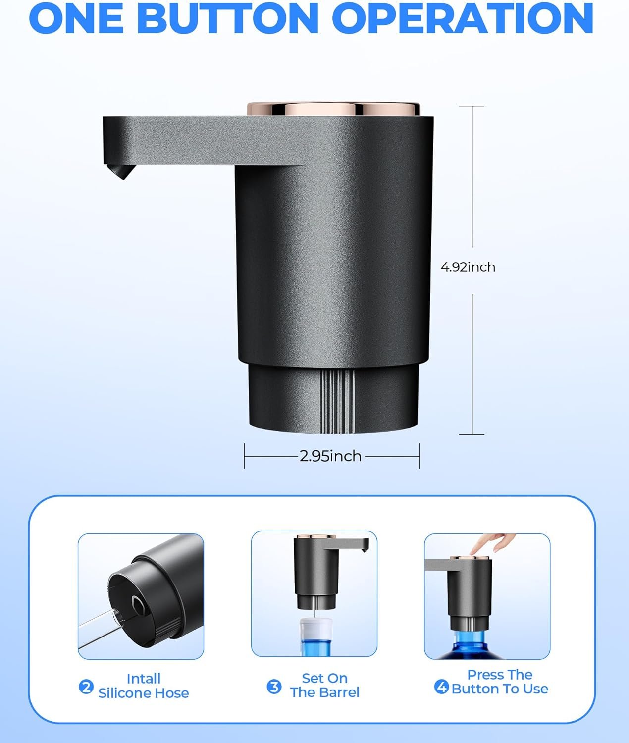 【Effortless One-Button Operation】: The drinking water pump Easily dispense water with a simple press of a button, saving time and effort.