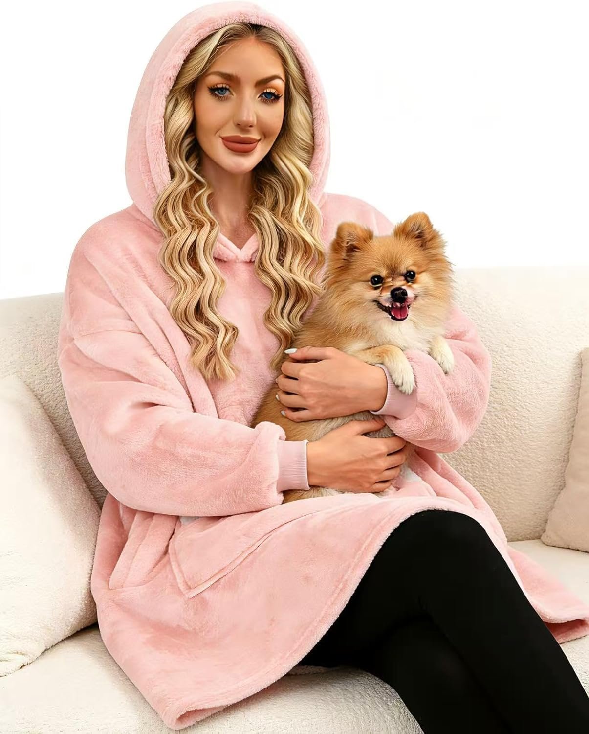 This unisex oversized blanket hoodie fits all body types seamlessly—flatters men and women with its inclusive, roomy design!