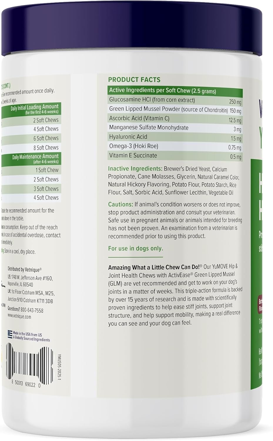 MADE IN THE USA : YuMOVE dog joint supplements are made in the United States. We’re on a mission: To make sure every dog lives their most active life, for life. We are the #1 veterinary joint supplement brand in the United Kingdom*, and help over 2 million dogs live happy, active lives with our dog joint chews developed by leading veterinarians and scientists.