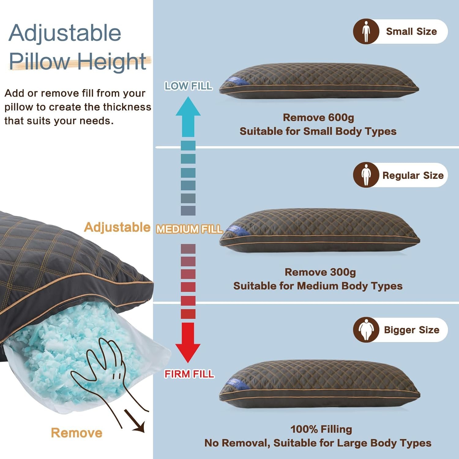 𝐂𝐔𝐒𝐓𝐎𝐌𝐈𝐙𝐀𝐁𝐋𝐄 𝐒𝐔𝐏𝐏𝐎𝐑𝐓- Unlike traditional pillows, our product features a unique shredded memory foam filling that allows you to customize the height and firmness of the pillow to your liking. Convenient zippered openings and pockets are designed to allow you to adjust or remove the filling effortlessly