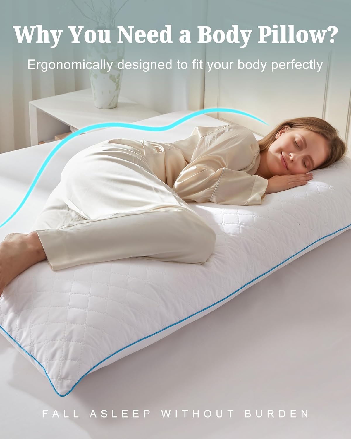 𝐅𝐈𝐋𝐋𝐈𝐍𝐆 𝐌𝐀𝐓𝐄𝐑𝐈𝐀𝐋- Filled with shredded White memory foam, adjust the height of the pillow in a certain space to meet your various needs, fluffy body pillow is suitable for side sleepers, back sleepers and tummy sleepers, with quilted fabric design on the surface, and soft and comfortable surface on the other side, breathable and suitable for year-round use
