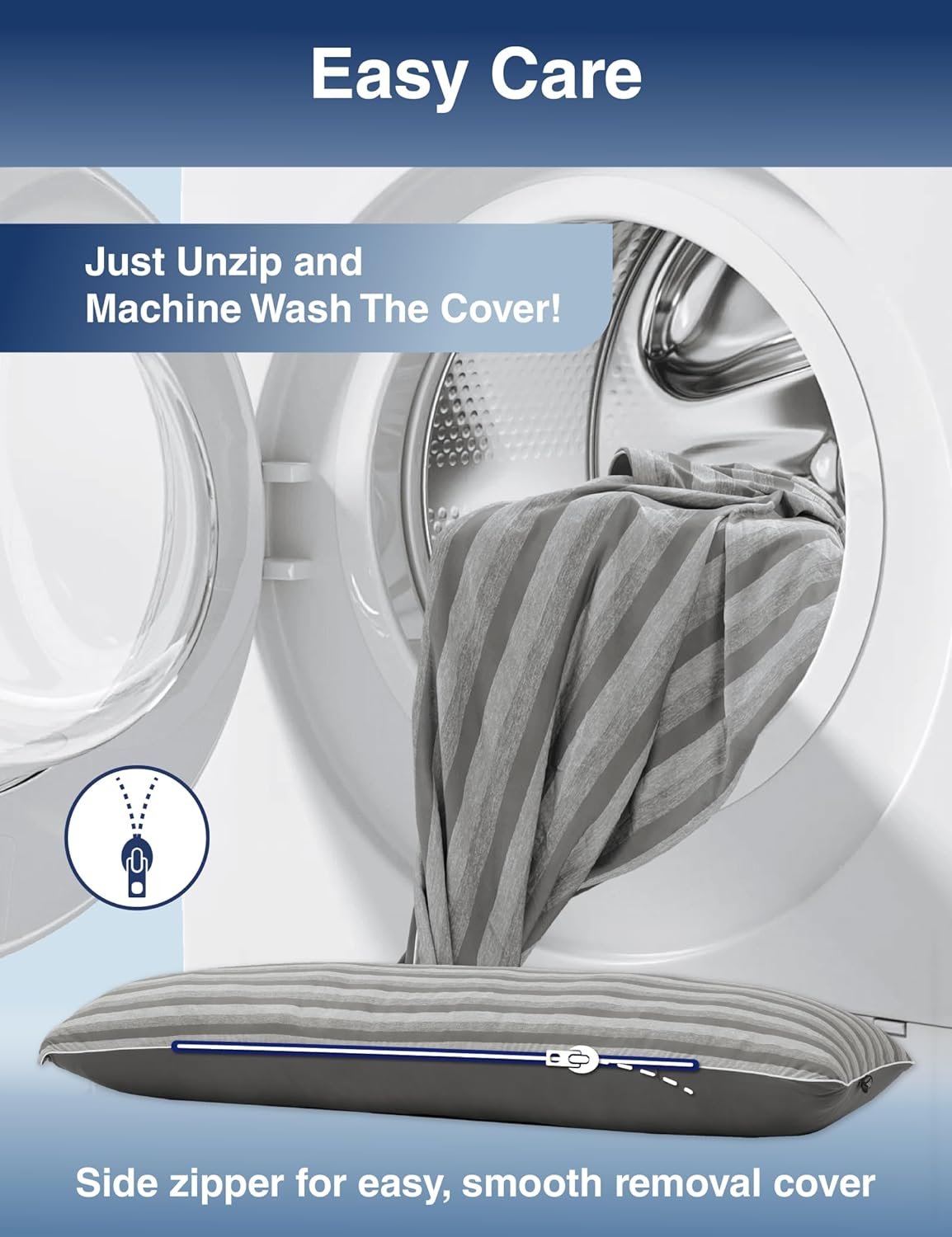 Real Cool Feeling Fabric: ZonLi long pillow features an upgraded cooling fabric with featuring a temperature control technology as flexible as water, when the temperature is high, the cooling fabric dissipates heat, evaporates sweat and cools down. When the temperature is normal, it stabilizes the temperature and keeps you comfortable all the time.
