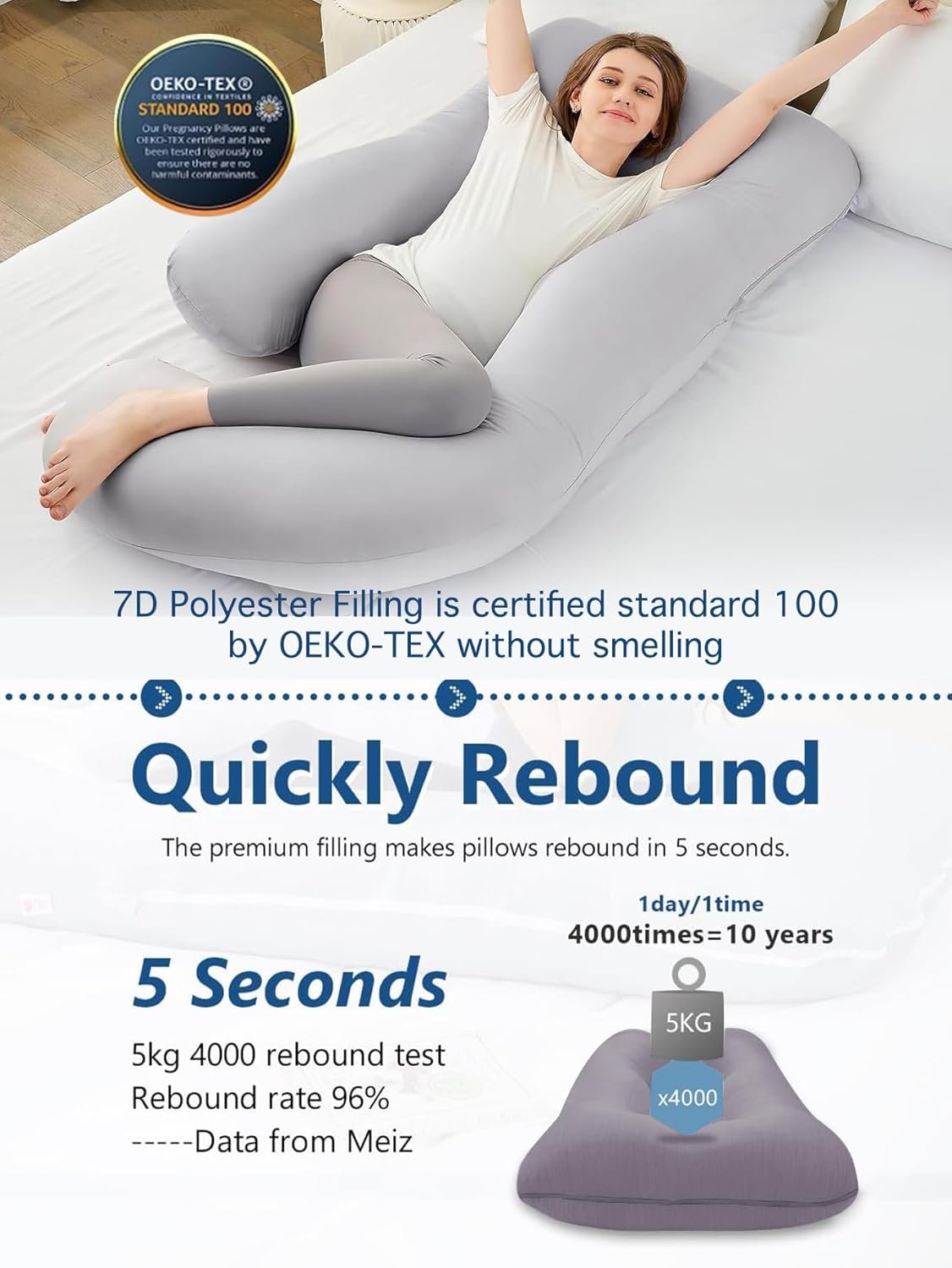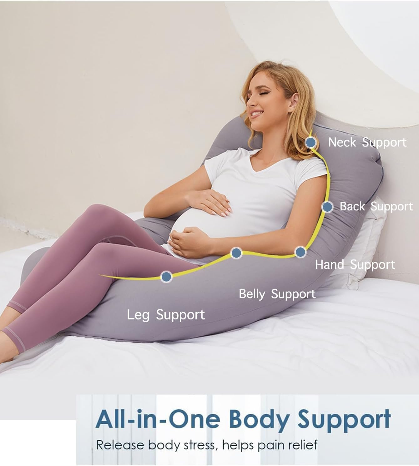 ZZZhen Pregnancy Pillow for Sleeping, G Shaped Maternity Pillow – 56 Inch with Grey Microfiber Removable Cover, Multi- Use and Support Back, Hips, Legs, Belly for Pregnant Women Sleeping